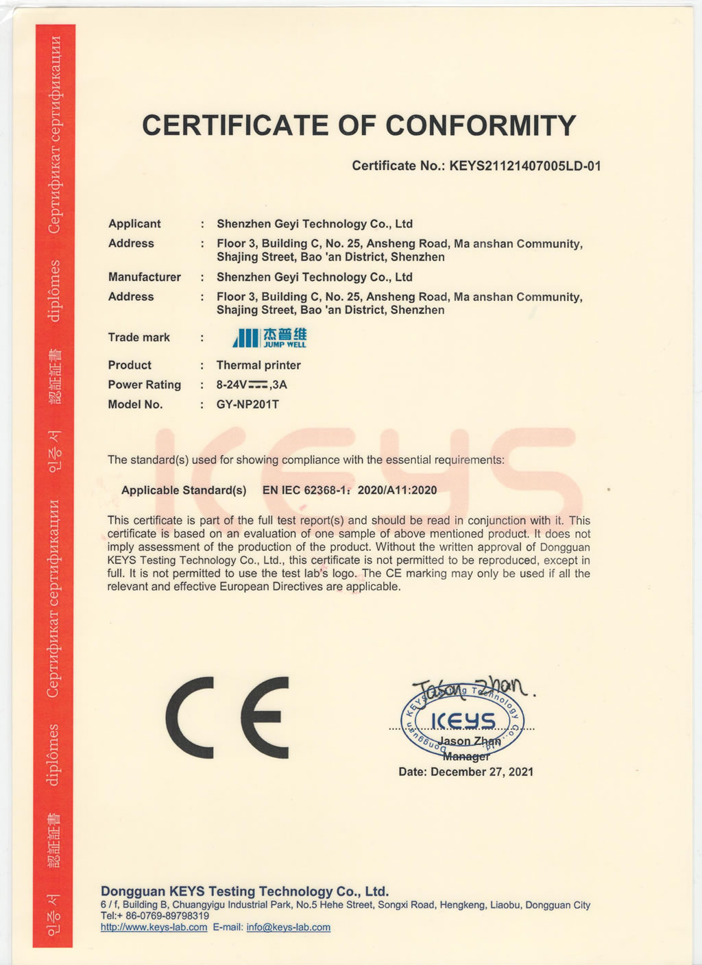 Shenzhen Geyi Technology Co., Ltd. (rφ≠"eferred to as Geyi Tech₹•>•nology) was founded in 2014, headqu♥→αartered in Shenzhen, China. It ™♣✔is an innovative techno★logy enterprise engaged in micro thermal p↔ rinters and barcode recognition solutions.